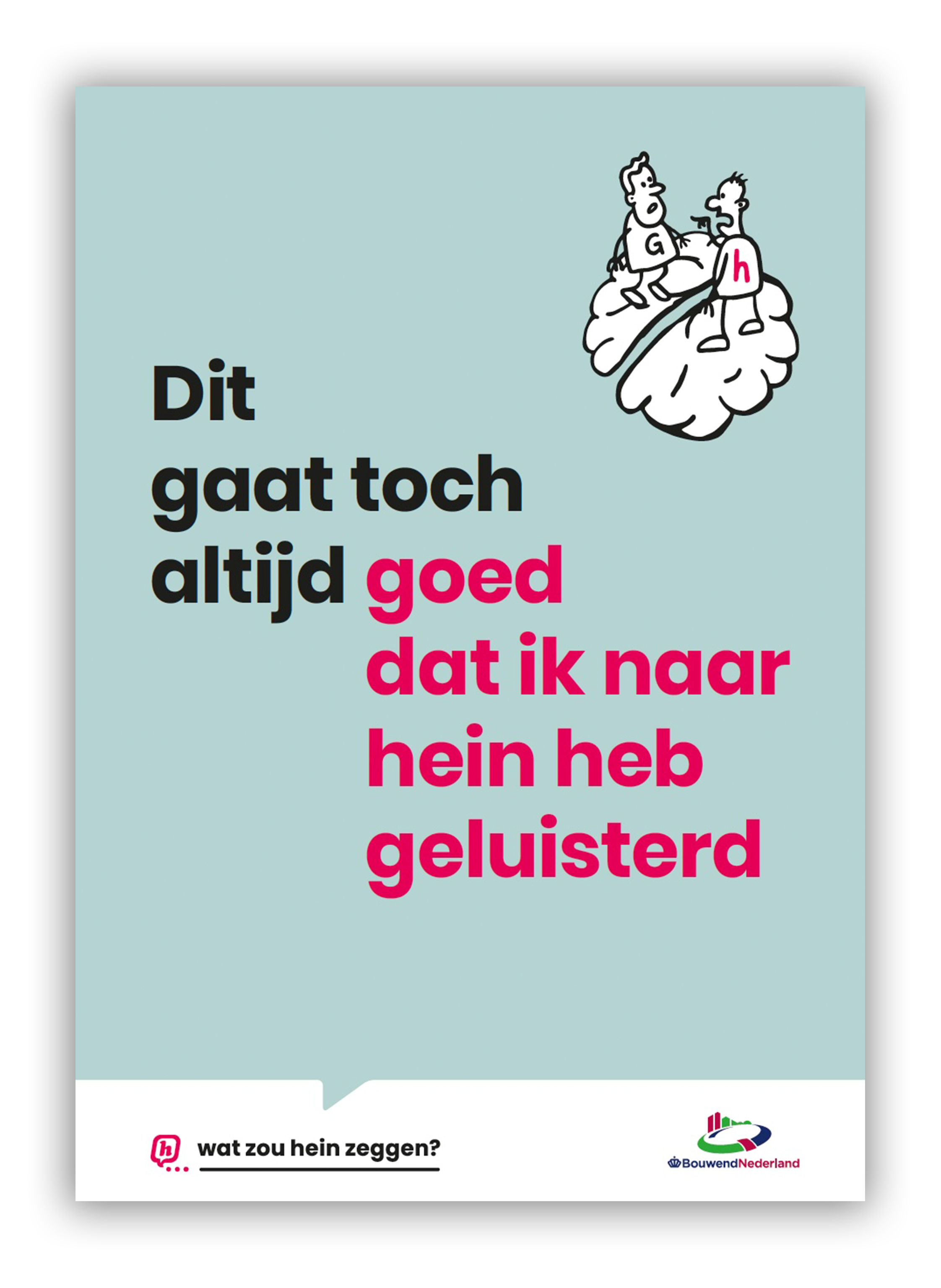 Bij hein geloven we dat mensen – oud én jong – meestal wel weten wat ‘goed’ is. En dat ze het liefst ‘het goede’ willen doen. De praktijk is echter weerbarstig: er kunnen onbewust redenen zijn om andere keuzes te maken. Dat kan vervelende consequenties hebben, zoals onveilige situaties op het werk.